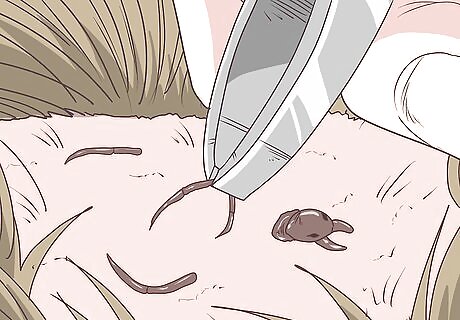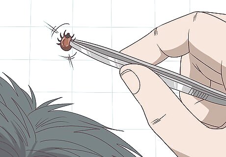 Grasp as much of the tick as possible with tweezers. Grip the tick as close to its head as you can. This helps to prevent the head from getting stuck in your skin. Avoid squeezing the tick, as this can cause it to panic and release harmful pathogens. Don't use your fingers to remove the tick, as this causes it to release bacteria.