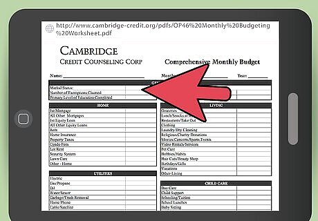 Create a budget. After most people have tracked their expenditures for a period of time, they will notice areas where they spend more than they need to. When you've monitored your spending habits for sixty days, revise your budget according to your best judgement. You can download a free budget worksheet at http://www.cambridge-credit.org/.