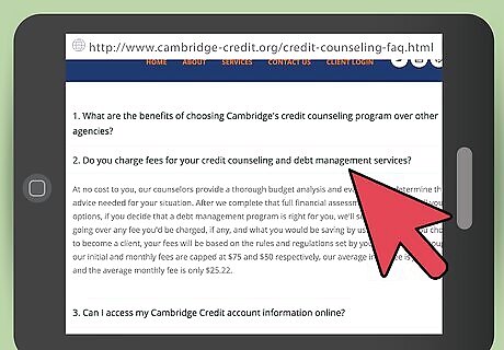 Inquire about their fees. Reputable credit counseling and debt management agencies won't have exorbitant fees. Counseling itself is usually free. Debt management might come with a set-up fee, and there's typically a small ($0-$75) monthly fee to use the service.