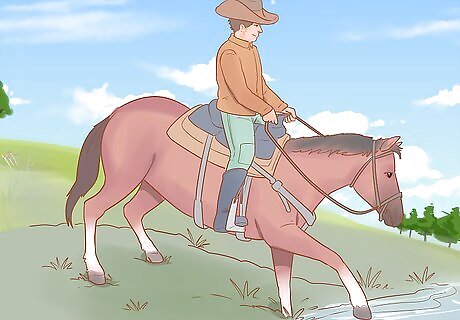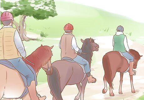 Find a trail ride just to get a feel for western riding. Many state parks and stables offer short group trail rides, and they generally offer guidance for beginners. You'll get a short tutorial on western-style riding, and then you can spend a few hours riding through nature. That will give you an idea of whether you like this style of riding and want to pursue something more competitive or just do it casually.