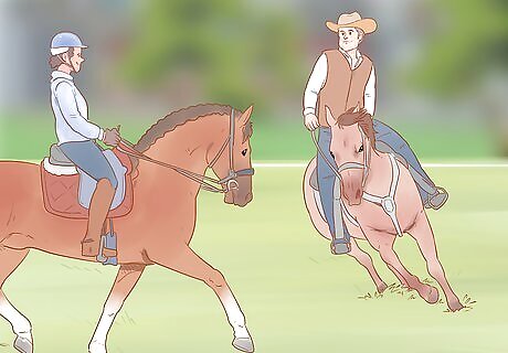 Ride a horse trained in the discipline you'd like to try. If you have your own horse, you may be tempted to try out several disciplines in a short period. However, if you try too many styles or disciplines too quickly, your horse may become confused. Riding a horse already trained in the discipline you're interested allows you to get a feel for it without confusing your horse. Later, you can train your horse for that discipline if you'd like.