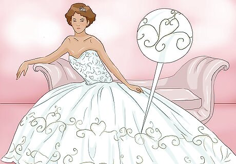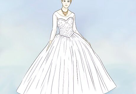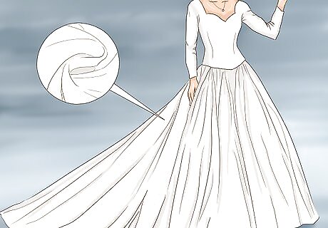 Embrace ball gowns and full skirts. Big, full skirts were practically made for winter wonderland weddings. Not only do these dresses look dramatic and sophisticated, the full skirts will help keep your legs warm. You’ll look like a princess (or a queen) on your big day, and your ball gown will insulate you from the winter weather. Tell the bridal shop that you're looking for ballgown or a-line silhouettes. You can find these types of gowns in anything from chiffon to ruched satin.