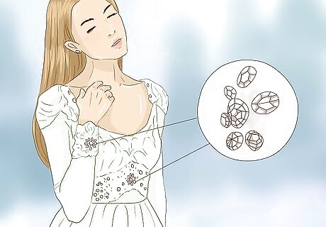 Include a bit of festive sparkle. Winter is a sparkly season. From Christmas lights to the New Year’s Eve Ball to the icicles hanging from roofs, twinkly lights are everywhere. Why not include a bit of this sparkle on your dress? Look for gowns with crystal beading or other embellishments to embrace the winter wonderland vibe. You can opt for a gown that’s beaded from top to bottom, or one with just some extra bling around the bodice. Any sparkle is good sparkle! If you don't have any bling on the dress, don't hesitate to add some to your look with jewelry!