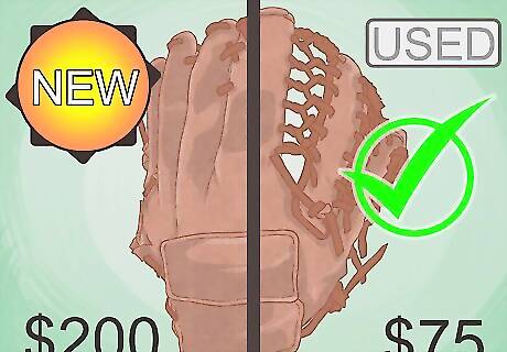Go with gently used gear if you are young athlete. Buying new gear can cost thousands of dollars, especially if your sport of choice is costly or if you play a different sport each season. You or your parent can cut your budget in half by purchasing used items, particularly those that will need to be replaced regularly due to wear or fit. Try to cut your budget by buying used items that don't make any difference when it comes to safety. For example, a new baseball or softball glove can run $200, but you can find a suitable used one for a fraction of that price.