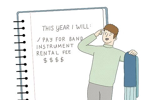 Plan for the year ahead. If possible, begin your search well before the new school year. Give yourself plenty of time to meet any requirements. These may include: Fees you have to pay in order to join or use equipment. Private music lessons will charge you for each session, for instance, while the school band may charge you a rental fee if you don't have your own instrument. Whether any travel is involved. Say you join the swim team, but they practice off-campus at a private pool. Is transportation provided by the school, or do you have to get there on your own? What grade point average (GPA) is required for you to be eligible. To participate in school activities, you will most likely need to maintain passing grades. Whether new members are welcome at any time, or if they have to apply by a certain deadline. Many team sports will have try-outs, for instance. Volunteer groups, on the other hand, will probably welcome you at any time of year.