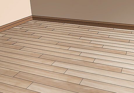 Lay down hardwood flooring for a homey, durable option. Hardwood looks beautiful and holds up well against lots of foot traffic, so it’s perfect for central spaces in your home. It’s also much warmer underfoot and easier on your back than other options. Choose a type of wood, width, and finish that suits your decorations and color palette. Some popular wood options include oak, maple, birch, and pine. The only downside of hardwood flooring is that the upfront cost can be quite expensive. However, with proper care, your hardwood floor will be a great investment and last you for years to come! Over time, hardwood flooring can develop scratches and dents from regular use. However, you can sand and refinish some floors up to 5 times to restore it to like-new condition.