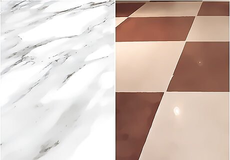 Pick out a tile for an exotic, creative look. There are countless different kinds of tile, from colorful patterns to simple neutrals. If you’re looking for a quirky, durable flooring to brighten up your room, pick out a fun pattern style from an endless array of options. If the tile begins to feel too cold or hard underfoot, you can always add some soft, thick rugs to warm it up. You can also choose between materials, such as ceramic or stone. Stone tiles, such as marble, travertine, or sandstone, are more durable, but ceramic give you a greater variety of options. Tile flooring is also very convenient for making repairs. If 1 tile chips or cracks, then you only need to replace that 1, rather than the entire floor.