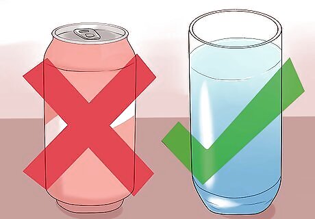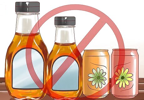 Stay away from sweetened beverages. Since high-fructose corn syrup is a common sweetener found in many sugary beverages, it's best to try to limit or avoid these types of drinks. Not only are sweetened beverages linked to increased IBS symptoms, they are also linked with weight gain and other chronic health issues. Eliminate regular soda, sweetened coffee drinks, milkshakes, chocolate milk, fruit drinks, fruit juice cocktails, lemonade and sweet tea. Remember that diet drinks can also be an issue due to the sugar alcohols they contain. Regardless of what you choose, always read the label.