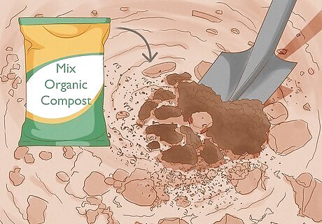 Purchase organic soil, if necessary. If your soil is of very poor quality or will not support the kinds of plants you wish to grow, you can purchase organic gardening soil from a garden center or online retailer. Look for soil that is labeled “Organic” or labeled with an organic certification logo. Organic soil mixes should contain organic matter (such as compost, peat moss, or worm castings) that can encourage microbial activity and provide nutrients for your plants. Most pre-packaged gardening soil is designed to be either used in containers or mixed in with your pre-existing soil. Follow the instructions on the label carefully.