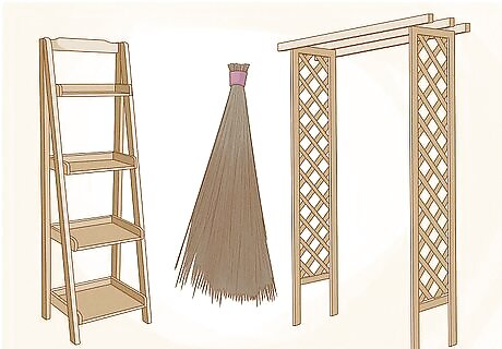 Buy environmentally friendly garden tools. In addition to your plants, fertilizers, and pest control supplies, also consider the environmental impact of your tools. Look for products that are reusable, biodegradable, or made from recycled materials. Opt for tools that are mechanical instead of motorized, when you can. For example, you might use: Trellises, brooms, and other garden accessories made of sustainable bamboo. Biodegradable planters that can go straight into the ground during planting. Watering cans and other tools made of recycled plastic or other post-consumer recycled materials. Old-fashioned push reel mowers or scythes instead of motorized mowers and weed-whackers. Flea markets, second-hand stores or garage sales are good places to find used gardening tools.