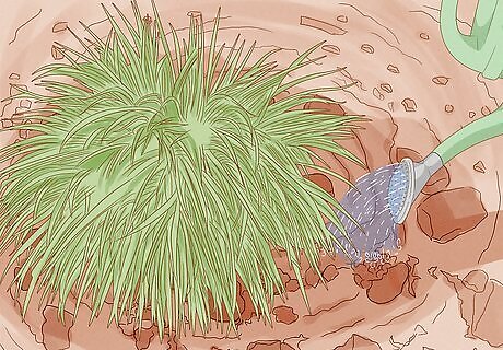 Water your plants with collected rainwater, if possible. Save water and avoid introducing water-treatment chemicals into your garden by collecting water directly from the skies. The easiest way to do this is to connect a rainwater diverter and rain barrel to the drainpipe on your roof. The diverter can send water to 1 or more linked collection barrels. You can buy rain barrels, diverters, and barrel linking kits at most home and garden supply centers. You can also make your own rain barrel. Alternatively, you can make a rain garden, a garden planted in a shallow depression that catches rain water directly from roof gutters, downspouts, or your property’s natural runoff pathways.