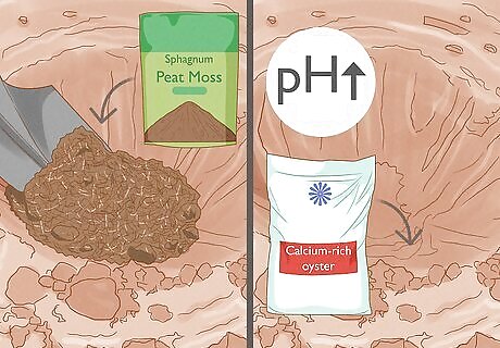 Amend your soil’s pH with organic materials, if you need to. If testing reveals that your soil’s pH is too low or too high for the plants you’re interested in growing, you can add organic materials to the soil to change the pH. For example: You can lower the pH of your soil with sphagnum peat or organic mulch. Raise the pH of your soil with calcium-rich oyster or clam shells, shell marl, dolomite, gypsum, or wood ash. It is preferable to to choose plants that are suited to your native soil rather than trying to amend it.