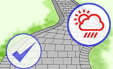 Choose pavers that work for your climate. Brick is a porous substance, and may break down more quickly than concrete in areas with a lot of rain, heat, or wind. If you live in a moderate climate, however, brick is likely to weather well. Concrete and stone hold up better in harsh climates. If you live somewhere with extreme weather conditions, look for brick designed for inclement weather. Pavers are typically made from concrete, stone, or brick, and each material has its own unique benefits and drawbacks. If you live in a harsh climate but love the look of brick or limestone, go for it! You may simply need to work paver replacements into your yearly house budget. The cost of replacement will depend on the material and the extent of the damage, but it should cost between about $300-$3,000.