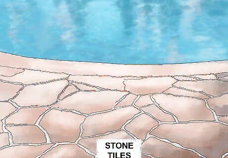 Finish with stone for a natural look. Stone pool tile blends nicely with surrounding landscaping, and it’s great for young children because of its slip-resistant properties. Use stone tile made from a beautiful type of stone like sandstone, limestone, or granite to create a smooth, sophisticated finish.