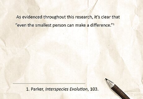 Chicago style in-text citation Chicago style commonly uses footnotes for in-text citations. To cite a textbook in this style, add a numbered footnote immediately after a cited sentence. Write a shortened citation in the note (see below), then provide the full source information in a bibliography at the end of the paper. Sample Chicago style footnote: As evidenced throughout this research, it’s clear that “even the smallest person can make a difference.” → 1. Parker, Interspecies Evolution, 103. If the textbook has up to three authors, write each author’s last name into an in-text citation or footnote, separating the final two names with the word “and.” If the textbook has more than three authors, cite the first author followed by “et al.”. Chicago style also has another accepted format known as author-date, which you can read more about here.