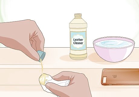 Add a small amount of leather cleaner to a wet, cotton cloth. Use only a pinch of leather cleaner, as a little goes a long way. Squeeze the cloth to rub in the soap until it’s evenly spread across the cloth. Use warm water to wet the cotton cloth.