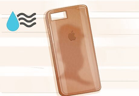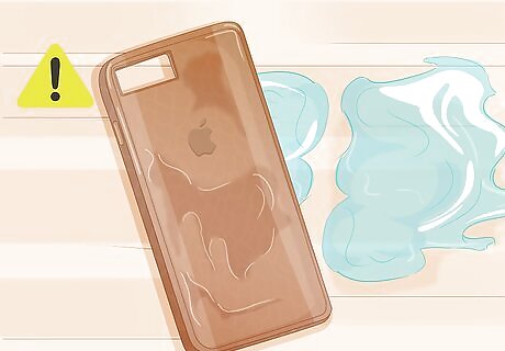 Avoid stains by keeping your iPhone case dry. Leather absorbs water and other liquids, which can easily cause a stain. If your phone case does get wet, dry it immediately and put in in a place that’s cool and dry. Once the case is dry, wipe it with a small amount of the leather care product you’ve purchased. Oil, makeup, and dyed materials like denim can also stain your iPhone case, so keep it away from these things as well.