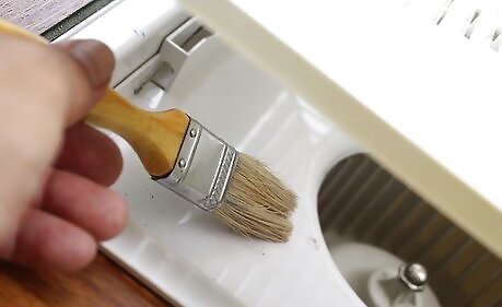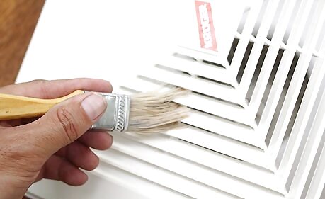 Sweep out the air return registers. Now, turn from one register to another register. The air return registers will probably be fastened, so use a screwdriver or the appropriate tool to undo them. Use a broom to sweep out the dust. Get as far back in there as possible. Then, use that same stiff-bristle brush to remove any dust buildup. Fasten the registers again when you're done.