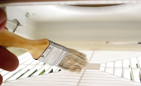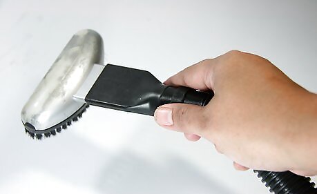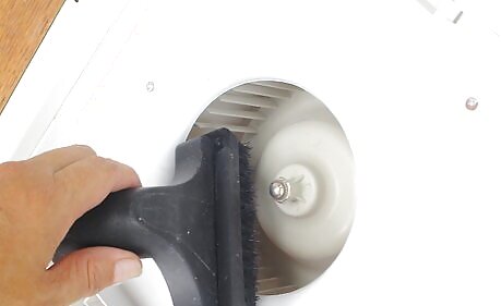 Go back and clean the supply registers. Return to clean the supply registers that you covered in paper towels not too long ago. Remove and toss away the paper towels. Lift the register. The fan will be pushing out dust. Use a vacuum hose to catch that dust before it starts to dirty up the room. Then, use the stiff-bristle paintbrush to scrub off any caked on dust. Now you're getting somewhere.