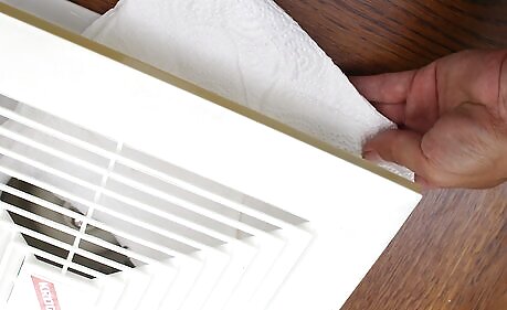 Cover the supply registers with paper towels. In basic terms, the supply registers are the things that supply heated air to the rooms. Lift the register, cover it in a paper towel, and put it back in place. It's as easy as that. This will keep excess dust from being released into the room while you clean the air ducts.