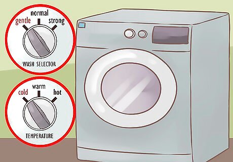 Use the gentle cycle with cold water. Choose the slowest and most gentle cycle on your washing machine. Only use cold water to wash your denim. Use a denim wash detergent instead of regular laundry detergent.