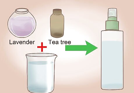 Try an essential oil mist. Lavender or tea tree essential oils may help remove smells and kill bacteria after you’ve worn your raw denim for awhile. Mix two of drops of either essential oil with one ounce (28 grams) of water in a spray bottle. Spray the mist along the areas that may hold odors, like the inside seam of jeans. Make sure not to use too much. If you use too much, the smell with be too strong. Only use a few pumps of the spray bottle.