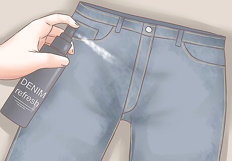 Use a deodorizing spray. Between washes, you may want to freshen up the denim, especially if you wear it often. Try a deodorizing spray or a denim spray. These sprays can help remove odors and freshen up any staleness. You can buy denim refreshing sprays online through a variety of retailers. If you want to use a regular deodorizing spray, brands like Febreze and Renuzit will work.
