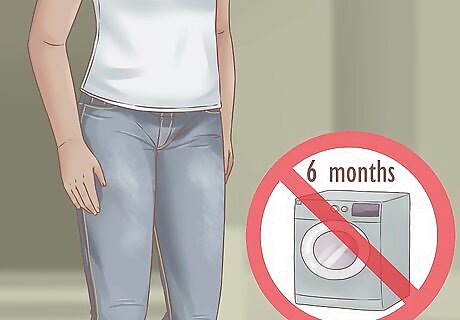 Avoid washing your denim for as long as possible. Raw denim has not been pre-washed. Instead, you break it in and soften it with wear. If you wash raw denim, the indigo dye bleeds out and it can alter the perfect fit you have broken in. Instead, wear your jeans as long as you can without washing them. Try to go at least six months without washing your raw denim. Some people go months without washing their raw denim, while others go years.