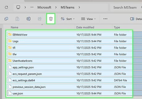 Quit Teams, if it's currently running. Teams must be closed for you to clear the cache.