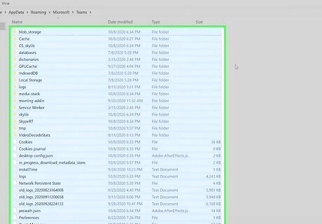 Delete all the files and folders in the "Teams" folder. When Run takes you to the "Teams" folder, everything inside that folder should be deleted to clear the Teams cache.