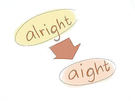 Truncate a word. This is when you cut off a portion of the word, either at the beginning or the end. Mash two truncated words together to form new compounds. You can combine this with adding prefixes or suffixes to create almost entirely new words. For example, instead of saying “all right,” the words can be truncated and mashed together to form the word “aight.”
