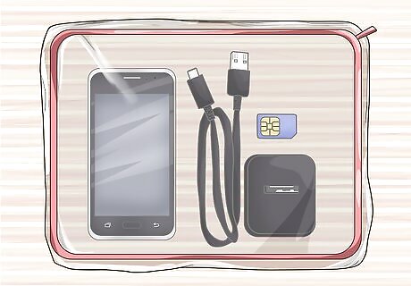 Keep a cheap backup phone in your emergency kit. This will give you an extra lifeline in case your main phone breaks, gets lost, or becomes otherwise unusable. Store this burner phone in a secure, waterproof container, and make sure to include a charger, SIM card, and anything else the device requires to operate. Look for inexpensive emergency phones at used electronics stores. By law, all cell phones must be able to make 911 calls whether you pay for a wireless subscription or not. Consider buying a prepaid or pay-as-you-go SIM card so you can call family and friends during emergencies without paying a monthly service bill.
