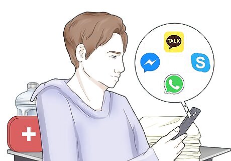Communicate via the Internet if your calls and texts won't go through. If you can't get any cell service during the hurricane, or if the network is simply too congested to use, see if you can still access the Internet. If you are able to, try using social media apps like Facebook or dedicated messaging apps like Skype to stay in touch with people.