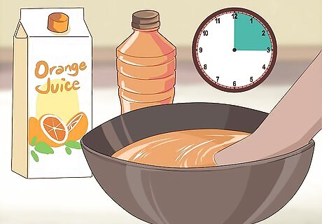 Soak nails in orange juice for improved nail growth. Orange juice is high in vitamin C, which can help to make nails stronger and healthier over time. Orange juice has a high level of folic acid, which also helps nail growth.
