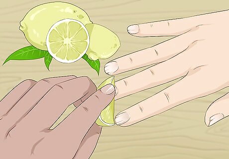 Consider using cut lemons for a quick rub method. This can help to brighten the nails and clean them. Rub cut lemon slices on your fingernails for 15 minutes before rinsing off with warm water. Pat dry and add moisturizer as usual.