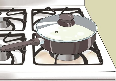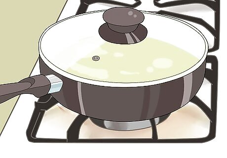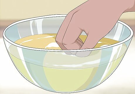 Warm the olive oil gently in a saucepan. If possible, use a ceramic or glass pan for heating in. Do not heat excessively or heat until hot; just a gentle warm. Warming by holding it over a candle flame is another option, or even using it straight from the bottle if it is a warm day and the bottle is warm.