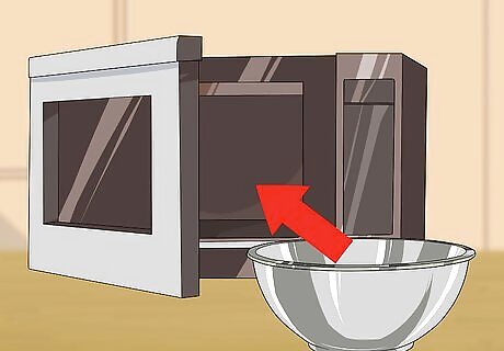 Warm a little extra-virgin coconut oil in a ceramic or glass pan. Ensure that it is gently heated, not made too warm. Resting the bottle in warm water can be sufficient to melt solid coconut oil in cooler temperatures.
