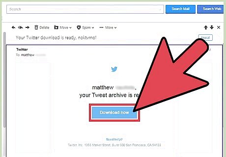 Download the Twitter Archive. On the page for downloading the Twitter archive, there is a blue “Download” button. Click the button to have your Twitter Archive downloaded in a compressed (zip) file. After downloading, do not try to open the zipped file. If you do open it, you will not be able to connect it to Timehop; instead, you will receive an “Invalid archive” message. You will then have to download another archive.