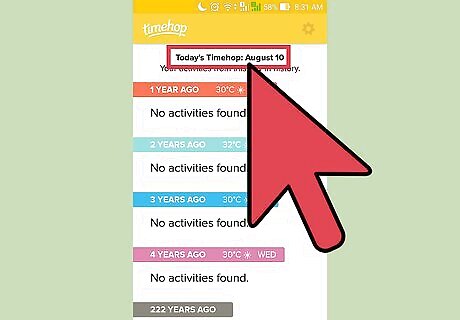 Launch the Timehop App. Go to the app menu of your phone, and tap the Timehop app icon to launch it. If you do not have the app installed, be sure to download it for free at your device’s respective store (Google Play for Android; iTunes App Store for iOS).