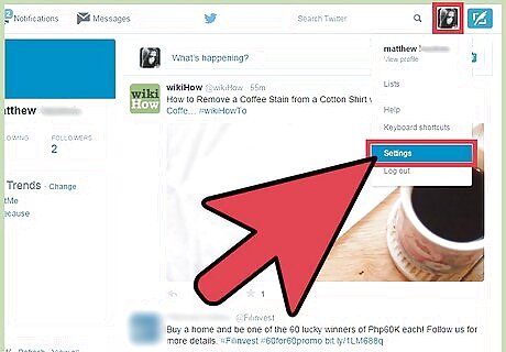 Go to X Settings page. At the top left corner of your X home page is a tab called “Profile and settings.” This tab is represented with an icon having your profile picture. Click it to display options under it. Scroll down, and click “Settings” to go to the Twitter Settings page.