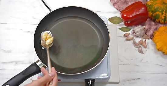 Try garlic oil. Garlic is a great flavoring for any dish. You can bring more garlic and its flavor into your food by using garlic-infused oil to prepare dishes. Garlic oil can also have the added health benefit of reducing a pimple or relieving psoriasis when rubbed on the affected area. Get garlic oil in a food or health store. Consider infusing your own, which can ensure you get a high dose of garlic in the oil. Use whole cloves of garlic and cook at 350 degrees Fahrenheit (175 degrees Celsius) for 20-30 minutes. Then cook in the oil for 5 minutes before funneling the infused oil into a container. For maximum health benefits, lower the cooking temperature to 250 degrees Fahrenheit (121 degrees Celsius).
