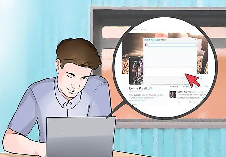 Make a post on his public Facebook page. Like Twitter, Facebook is another good place to make a post. While Twitter promotes interaction between fan and celebrity a little more, it's worthwhile to double your post on both sites. If you want a potential response, keep your message as to-the-point as possible. Celebrities don't usually have time to look into more in-depth responses. Unlike some celebrity pages, Lenny Kravitz's fanpage unfortunate does not have a private messaging setting. This means that any post you send to him will have to be public.