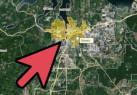 Move the cursor around the map you see. Notice all of the outlines? Those are places that can be found in that area. Here, Olympia is the city outlined by the yellow.