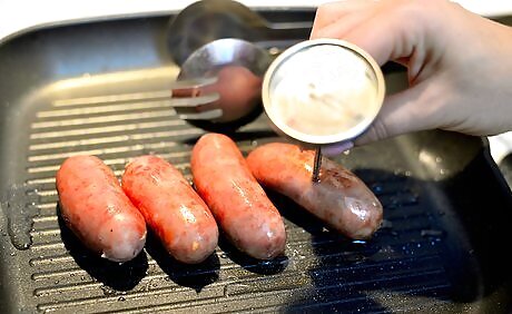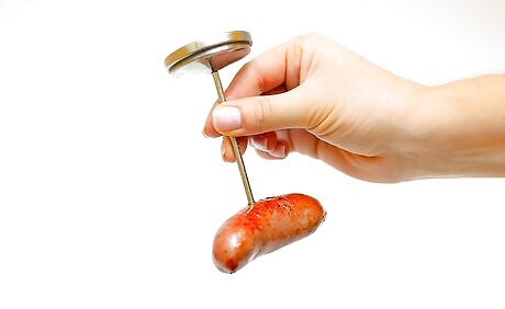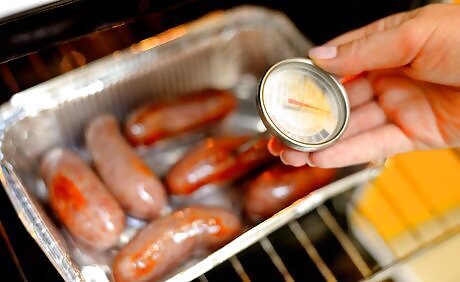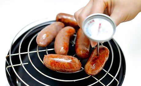 Check the internal temperature. Check the internal temperature of the bratwurst by using a meat thermometer and making sure the brats are about 160 °F (71 °C).