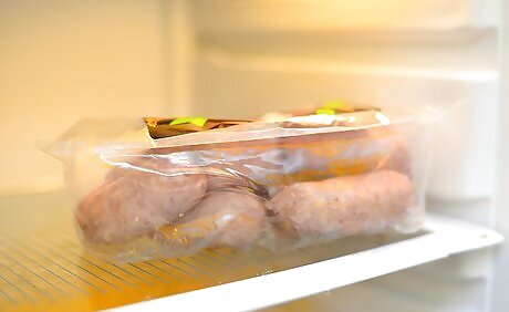 Store raw or pre-cooked bratwurst in the freezer. If the packaging has not been opened yet, store bratwurst in the freezer for up to 2 months. Be sure to put the package in the freezer before its expiration date. Write the date that you stored it on the container so that you can keep track of its expiration date. If the package has already been opened, store bratwurst in a freezer-safe container for up to 2 months. If you want to store the bratwurst for longer than 2 months, wrap the original package in heavy-duty aluminum foil, making sure that it is wrapped airtight. You can also use a heavy-duty freezer bag. This will prevent freezer burn.