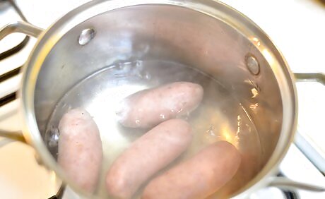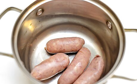 Put water and bratwurst in a pot or deep pan. Make sure your pan is deep enough that the brats will be covered in water. Place the bratwurst in the pan. Try to not let them overlap. Giving more room is better for cooking the bratwurst. Alternately, you can add half water and half beer to the pan for added flavor.