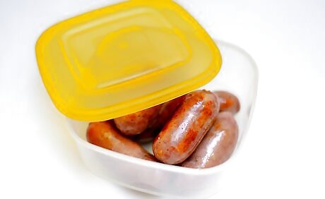 Store cooked bratwurst. Allow cooked bratwurst to cool to room temperature. Place the bratwurst in an airtight container and keep in the fridge. Cooked bratwurst can last for about 5 days in the fridge. You can also store cooked bratwurst in the freezer for up to 3 months in the freezer. Write the date that you stored it on the container so that you can keep track of its expiration date. Cook up a large batch of bratwurst and freeze it. This will make it easy to cook meals quickly with delicious bratwurst. Do not store raw bratwurst in the same container as cooked bratwurst.