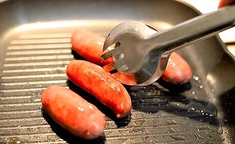 Don’t crowd the bratwurst together. If there are too many bratwurst on the grill, you raise the potential for causing a flare-up or grease fire. Spread out the bratwurst and give them some room to cook.