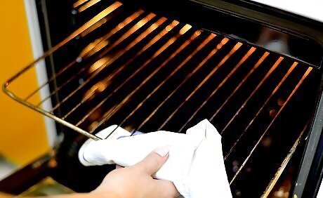 Move the rack in your oven to the topmost spot. In order to broil food, the oven rack must be about 4–7 inches (10–18 cm) from the heat element in the ceiling of the oven. If your broiler is a compartment underneath your oven, then you can skip this step.