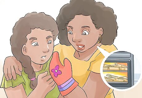 Teach kids how to stay safe in the kitchen. There are lots of ways that kids can get hurt in a kitchen, so it is important to watch them carefully and provide frequent reminders to keep them safe. This is important for young kids as well as older kids. Make sure kids know to use a potholder to touch anything that might be hot. Err on the side of caution and do not let younger kids touch hot things in the kitchen. Teach them to be careful when chopping veggies. Show them how to hold a knife to protect their fingers, and don’t let them do this until they are old enough to do so safely. Also, make sure that they keep their fingers clear of the mixer when it is switched on.